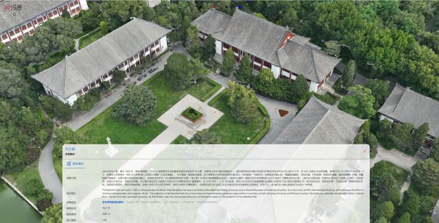 2023年4月,为了进一步增强师生的体验感,工作团队采用无人机低空摄影测量及全景摄影技术,完成了燕园校区的实景三维模型构建,并同时录入了所有文物建筑、历史建筑、革命文物和石雕石刻的属性信息。